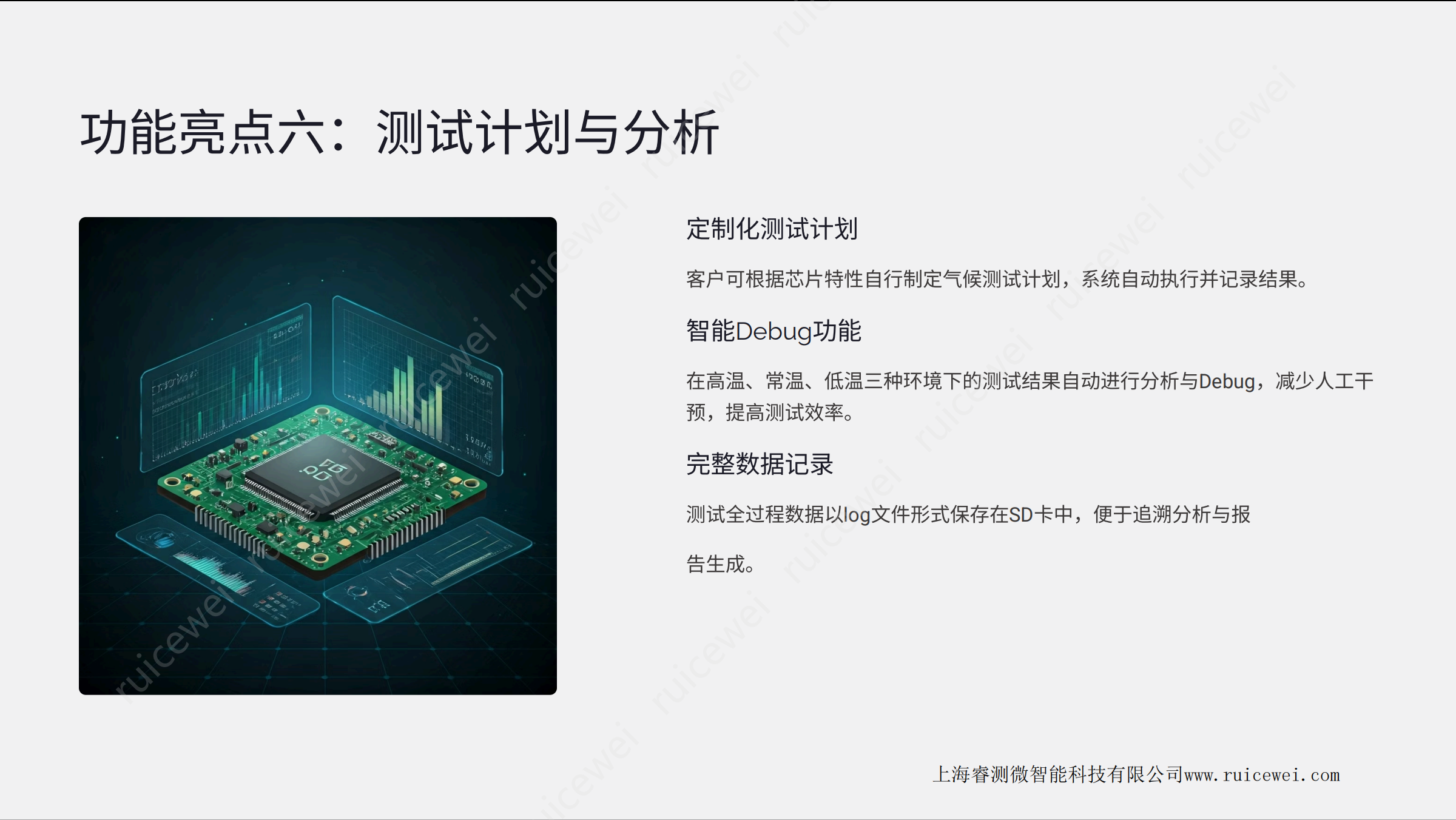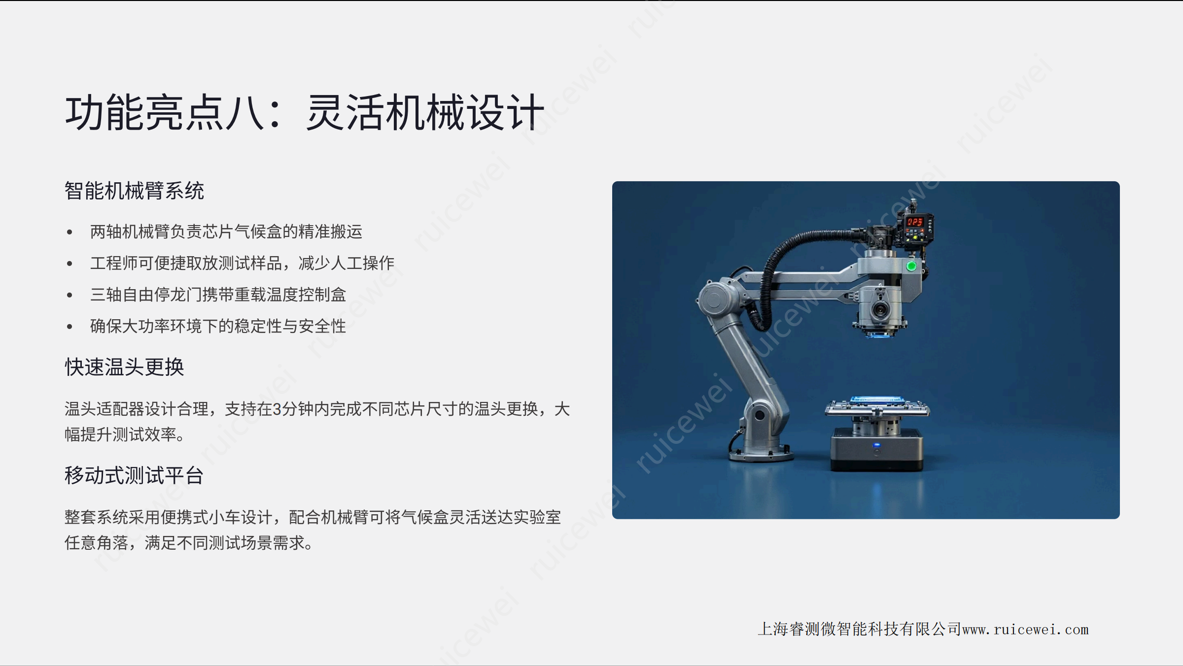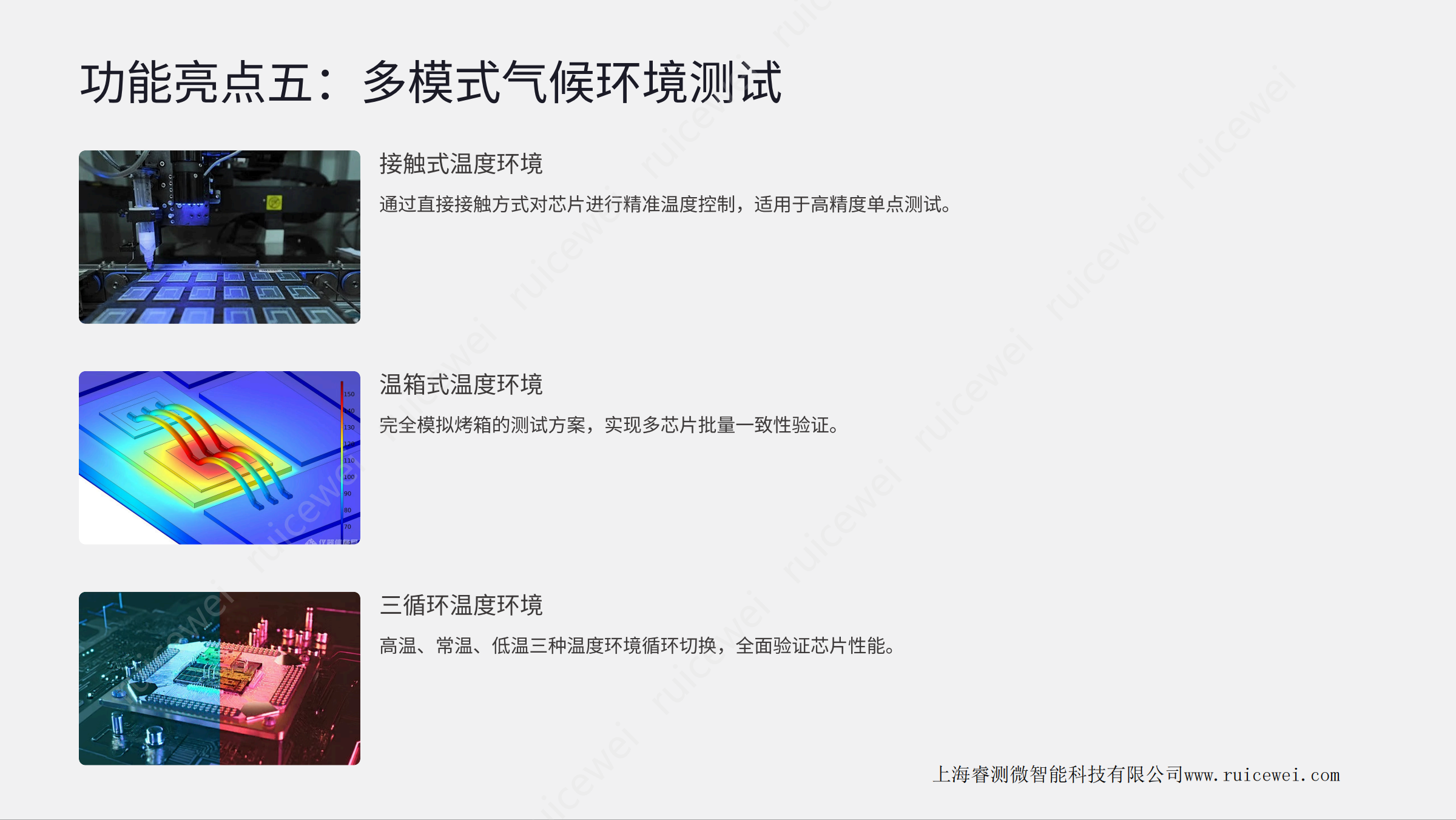 SF系列是一款领先的芯片气候环境自动化测试 设备 ,专为满足高端半导体及新一代集成电路研发与生产环节的严苛 测试需求而开发。本系统集成了极限温控、 自动循环、智能监测等多项创新功能 ,为芯 片测试提供可靠、精准、 高效的测试环境。